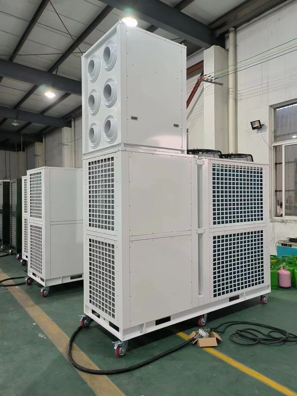 Letent climatiseurcontient l'évaporateur et un ventilateur centrifuge, qui absorbe l'air chaud interne de la tente par l'évaporateur froid et souffle l'air refroidi par le côté ou le haut de l'unité.La section du condensateur contient deux bobines de condensateur et un grand ventilateur axialLes climatiseurs de tente disposent également d'une pompe à chaleur, qui peut fournir de l'air chaud à la tente en hiver.utiliser le compresseur à rouleaux Panasonic, notre climatiseur de tente peut fournir de l'air chaud à -10°C à 20°C.
